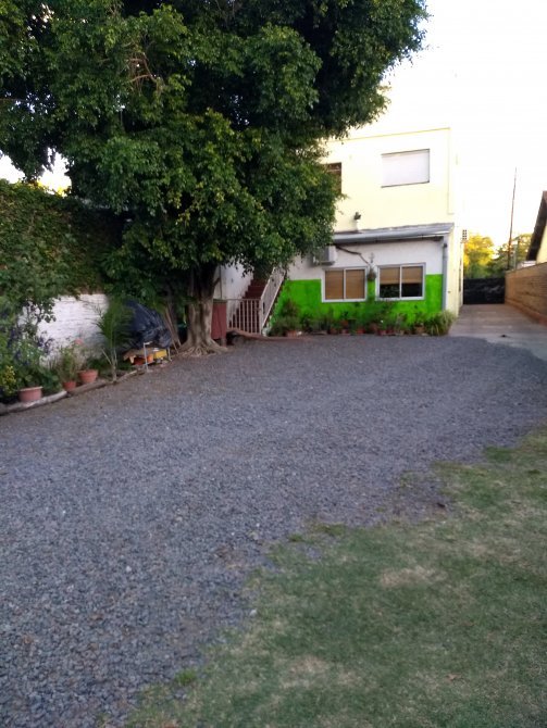 Entrada de vehículo pasante, extenso fondo libre y parabólico semi cubierto