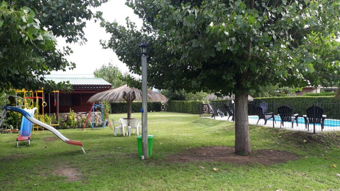 Son tres cabañas de un dormitorio y una de dos dormitorios, construida con troncos de Guatambu y piedras, muebles de ciprés artesanales, cocinas equipadas, ventiladores de techo, sommiers de primera calidad, servicio de cable e internet, calefacción a gas, cajas de seguridad, Aires acondicionado frio/calor, y todas las comodidades necesarias para vacacionar. El complejo cuenta con un amplio parque, cocheras cubiertas, aéreas de juegos infantiles, cancha de futbol y tenis, una hermosa piscina cercada y asadores bajo galería.