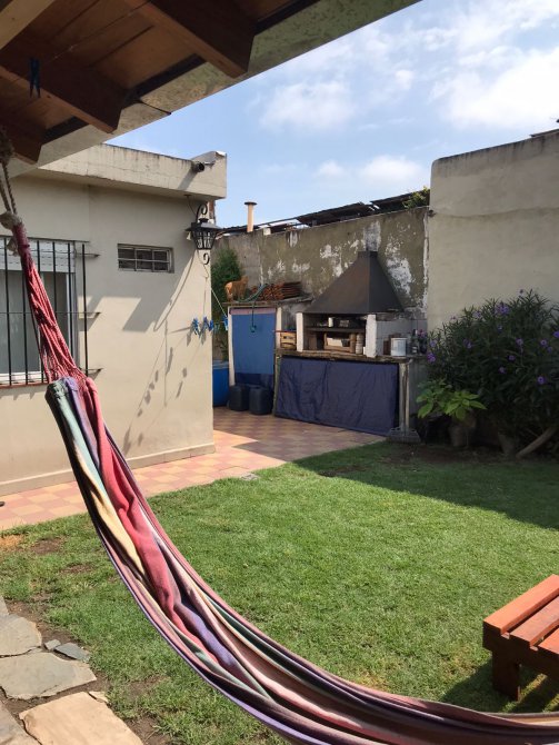 El mismo consta de living comedor de 2.4 x 8 metros, Cocina con amueblamientos sobre y bajo mesada de 3.5x2.2 metros, comedor diario con puerta balcón hacia galería muy luminoso de 4.7x2.4 metros, baño completo de 3x 2.30 metros, 2 Dormitorios, galería, quincho, patio, jardín y cochera cubierta para dos autos.