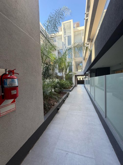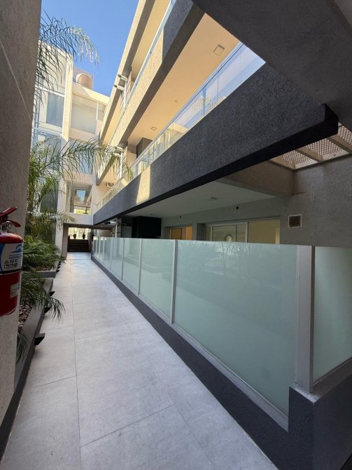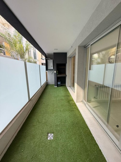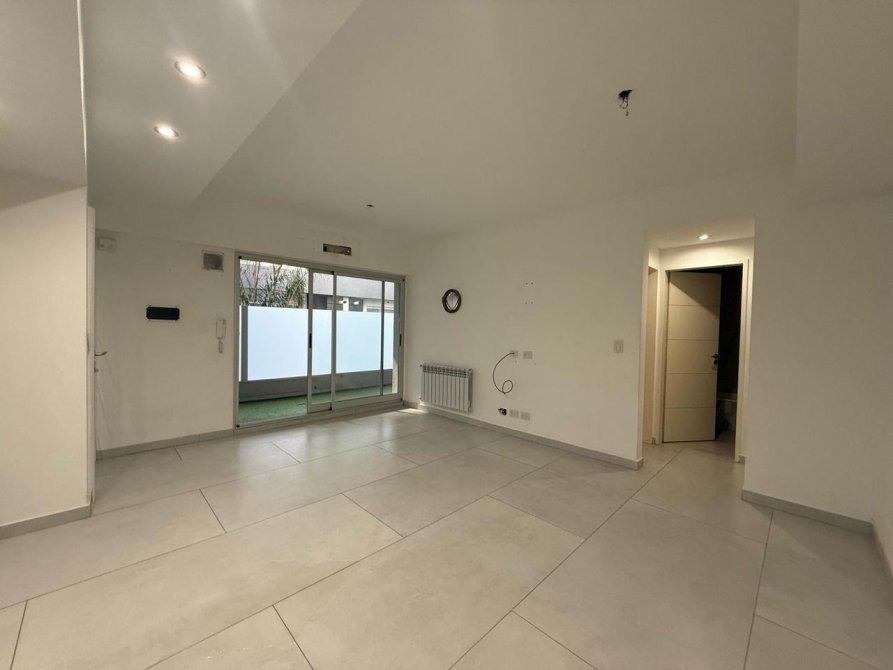 Hermoso departamento de dos ambientes en planta baja, con cochera cubierta. Cuenta con cocina comedor integrada amplia y luminosa, aparato de cocina semi-insustrial, dormitorio con placard, baño completo y balcón.