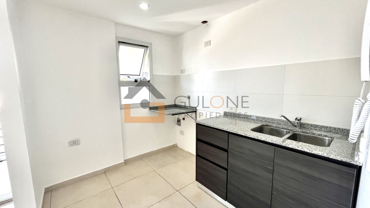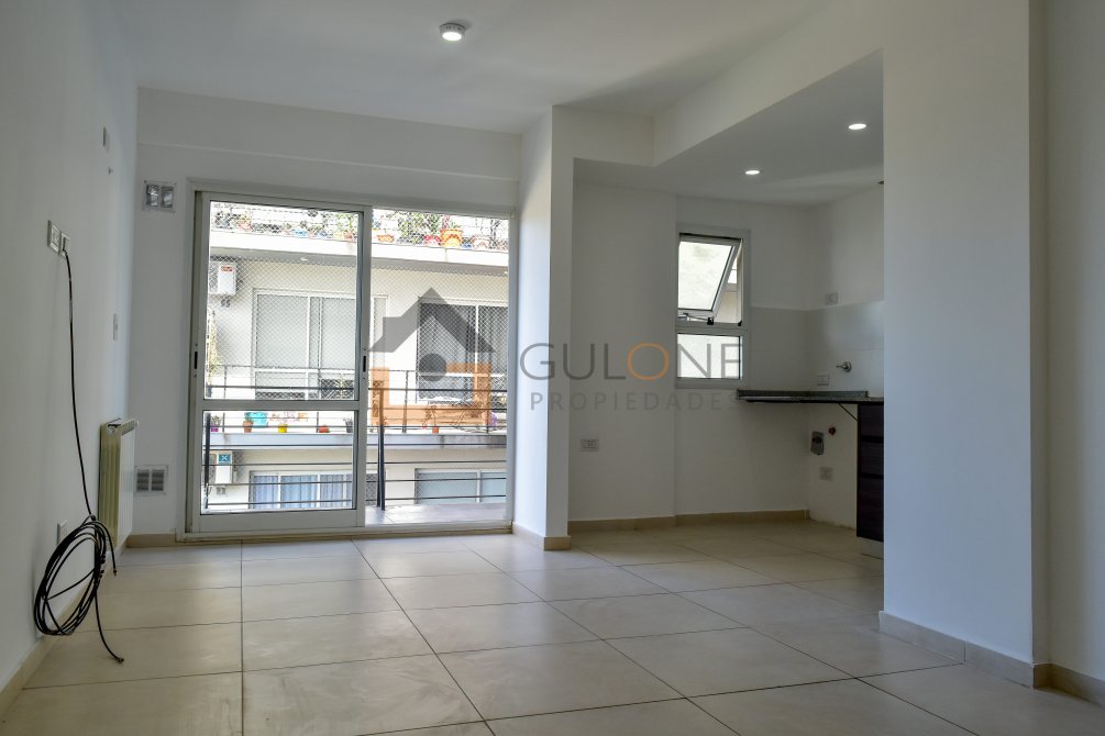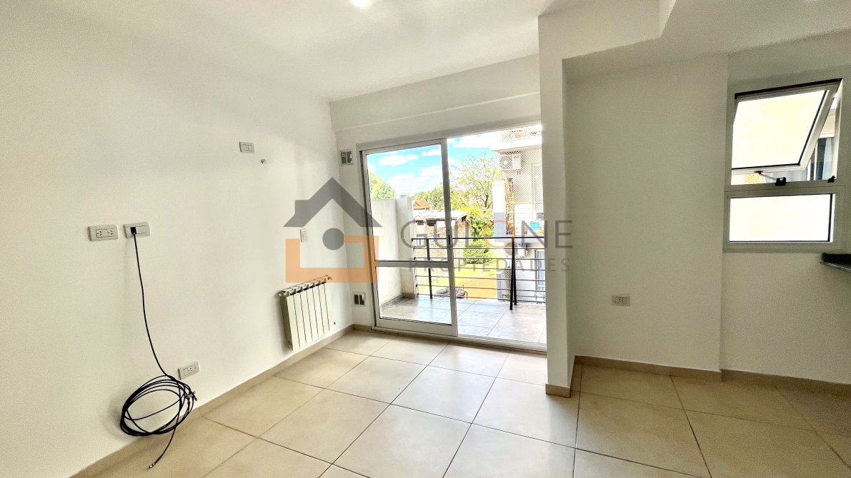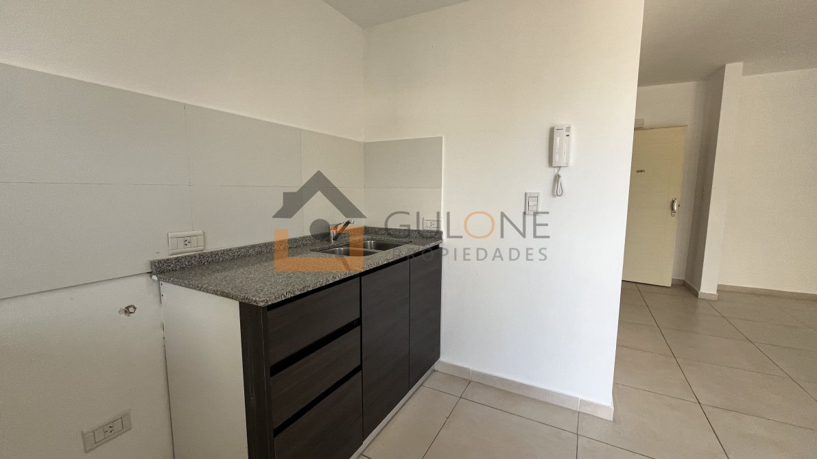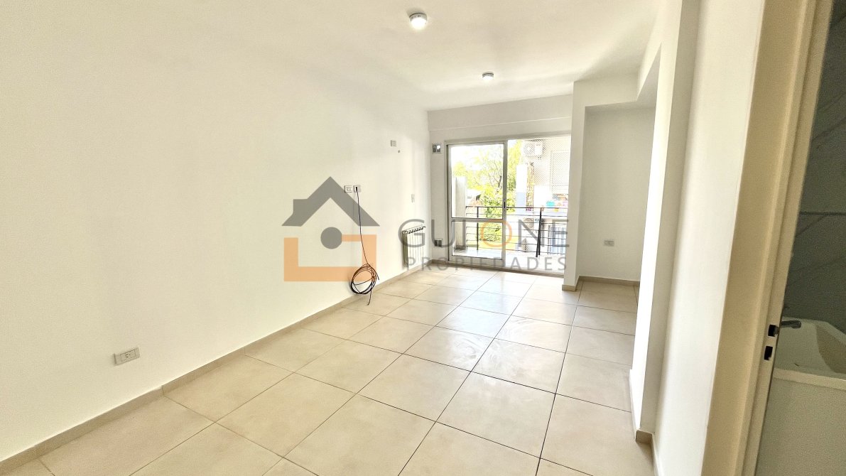 Ambiente luminoso con cocina integrada, baño completo y balcon.