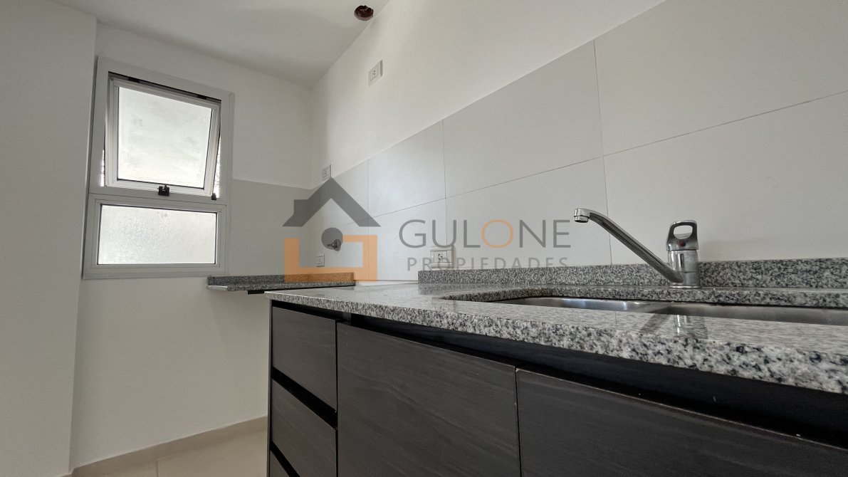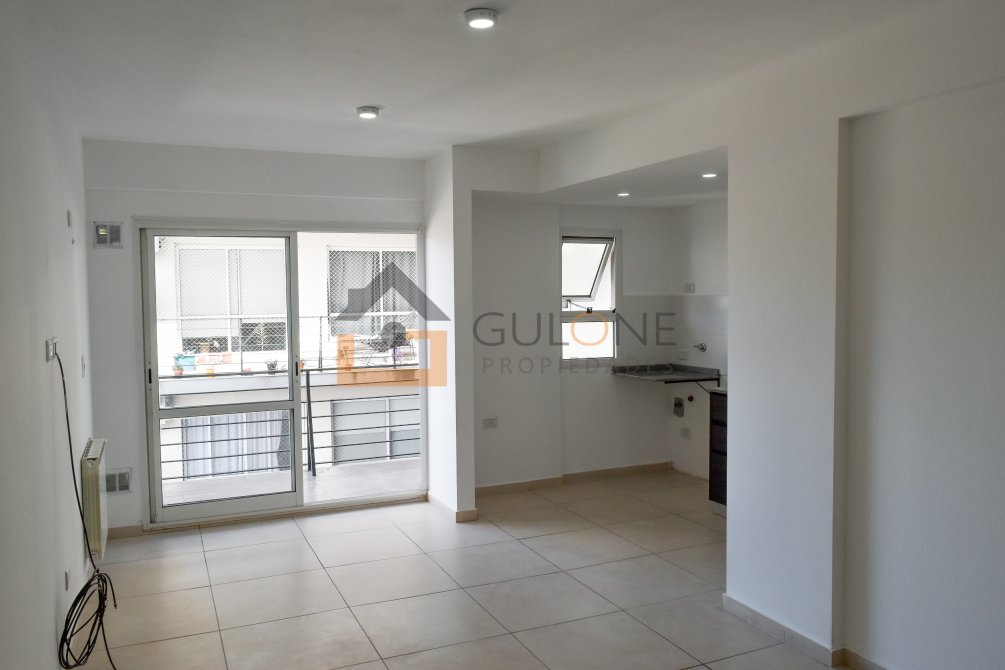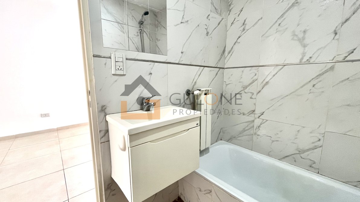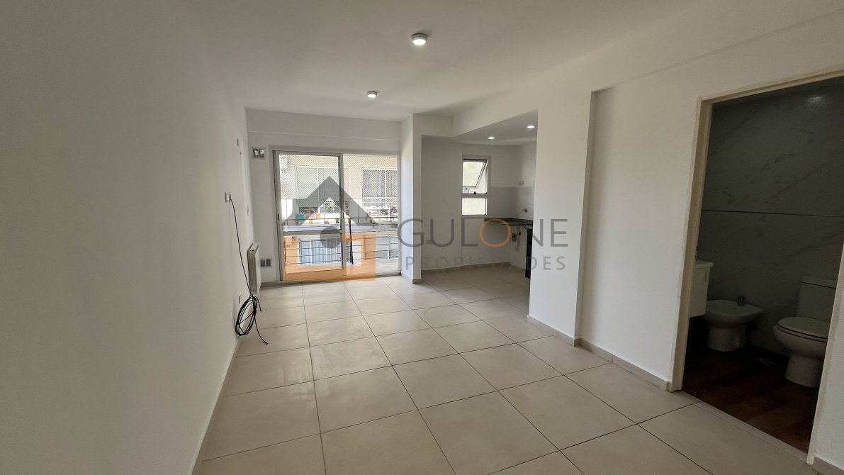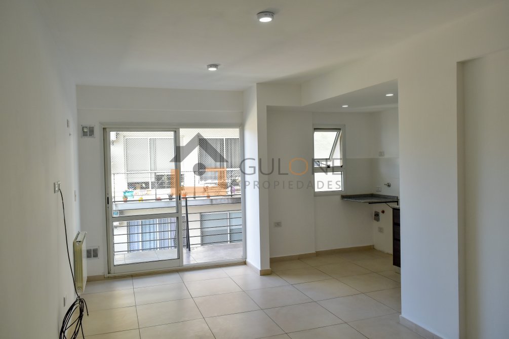 Ambiente luminoso con cocina integrada, baño completo y balcon.