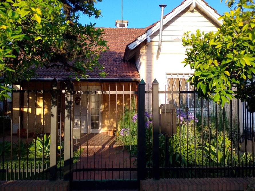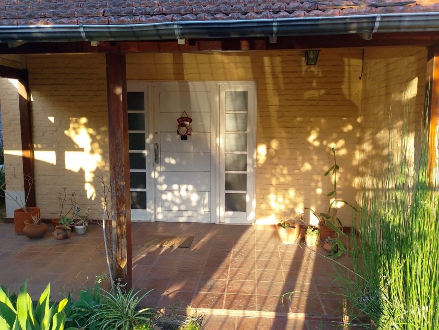 La vivienda cuenta en su exterior con una galería cubierta, la cuál se presenta como un espacio de transición al interior de la misma. Esta es conformada por un living-comedor amplio y luminoso, con ambientes bien proporcionados y buena circulación. Dispone de dos dormitorios, escritorio, baño amplio, y cocina independiente. En el exterior ofrece un patio de buenas dimensiones, con sectores embaldosados y espacio verde, ideal para uso familiar, reuniones o recreación. Además, cuenta con cochera semicubierta dentro del lote.